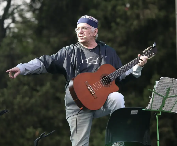 Desde el centro del escenario, Luis Pescetti guiaba al público con aplausos durante “El vampiro negro” cuando comenzaron a caer las primeras gotas de lluvia de la tarde. Lejos de dispersar a los asistentes, pareció avivar el ánimo: el público cantó más fuerte y siguió bailando.