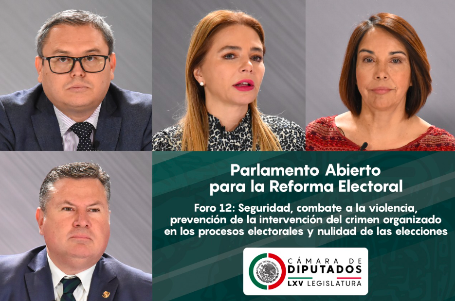 “Seguridad, combate a la violencia, prevención de la intervención del crimen organizado en los procesos electorales y nulidad de las elecciones”, fue tema del foro 12 del Parlamento Abierto para la Reforma Electoral, celebrado este jueves en la Cámara de Diputados.